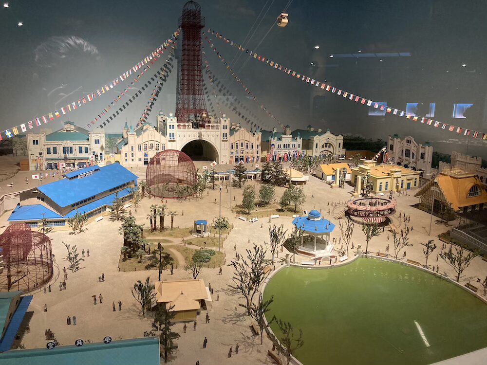 Au centre, une immense carte d’Osaka permet de se repérer et de localiser le château ou la gare. Tout autour, quatre vitrines illustrent la modernisation de quartiers emblématiques comme Shinsaibashi et Umeda. Le véritable coup de génie : trois d’entre elles se soulèvent mécaniquement pour se transformer en dioramas, révélant l’intérieur des bâtiments au rythme d’un documentaire.