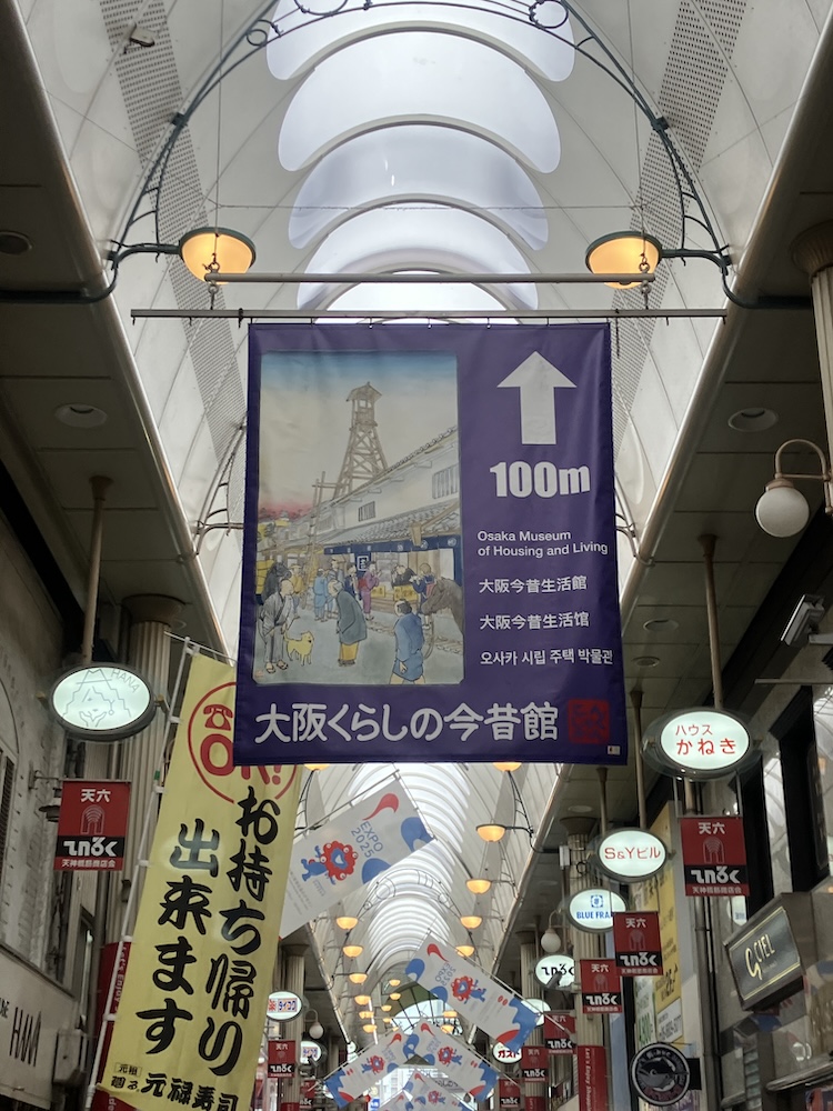 Pour rejoindre le musée, nous avons emprunté la Loop line (ligne JR), qui dessert en boucle les principaux sites touristiques d’Osaka. Après être sorties à la station Temma, nous avons arpenté la rue commerçante Tenjinbashi qui commençait à peine à s’animer (dédicace au magasin de brosses à dent 🤪. Cette matinée sera entièrement consacrée au musée.